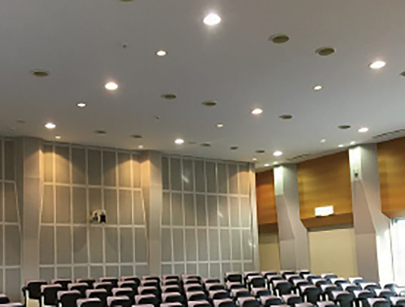 これに対して、安心天井Sは 2kg/m2以下=軽量な天井 の設計が可能なため、体育館等の学校施設の天井設計にご検討いただける工法です。